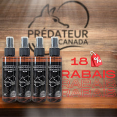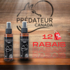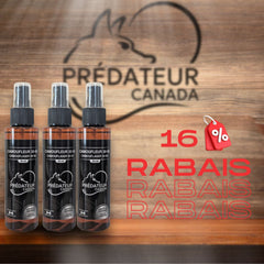 Les produits de Prédateur Canada ont été conçus pour réduire considérablement cette empreinte olfactive. En traitant vos vêtements, votre corps et votre équipement avec des produits spécialisés à base d’ingrédients naturels et de phéromones synthétiques, vous neutralisez les odeurs humaines et vous les remplacez par une odeur douce, forestière et familière pour le gibier.