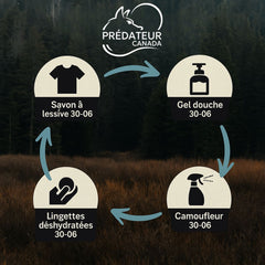Les produits de Prédateur Canada ont été conçus pour réduire considérablement cette empreinte olfactive. En traitant vos vêtements, votre corps et votre équipement avec des produits spécialisés à base d’ingrédients naturels et de phéromones synthétiques, vous neutralisez les odeurs humaines et vous les remplacez par une odeur douce, forestière et familière pour le gibier.